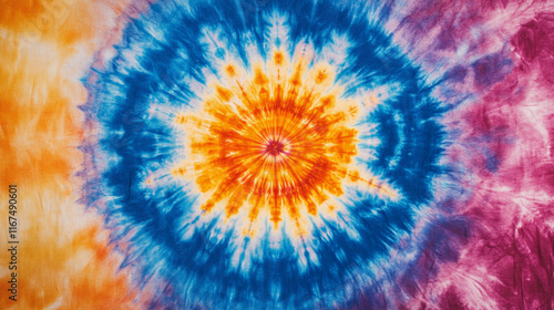 Blurred abstract tie-dye multicolor fabric texture symbolizing chaotic beauty with vibrant hues blending together creating a sense of dynamic motion and energy in a fluid, ever-changing pattern