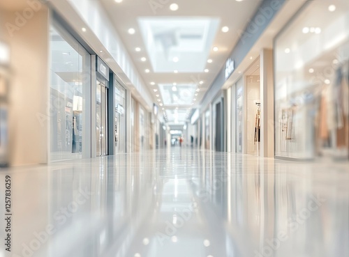 Blurred background of a fashion store with a bokeh effect, a blurred shopping mall interior in a light and white color tone.