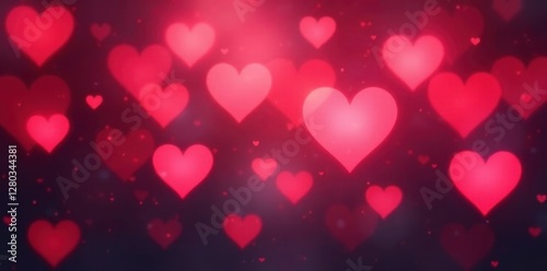 Blurred bokeh hearts in various shades of red and pink, card, stock