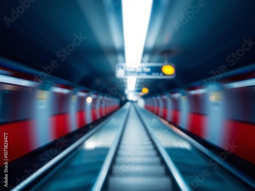 blurry, transportation, urban, infrastructure, subway, blurred background, subway, motion, escalator, movement, city, light blue