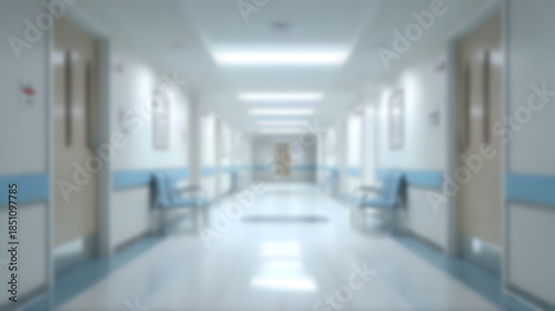 Blurry hospital corridor with blue and white walls