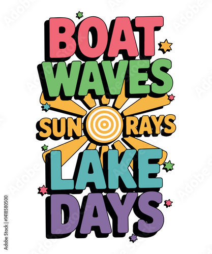 boat, wave, sun, ray, lake, day, summer, beach, adventure, graphic, design, t-shirt, poster, vibrant, fun, nature, water, holiday, sunshine, vacation, nautical, boating, ocean, sunburst, splash, summer fun, water sport, tropical
