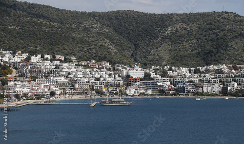 aegean, architecture, bay, blue, city landscape, harbor, harbor, hill, home, house, port, residential, sea, summer, tour tourism, touristic, town, city landscape, travel, turkey, turkish, vacation, view, white