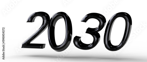 2030, future, year, new, black, shiny, white, background, number, digit, glossy, isolated, time, horizon, concept, modern, projection, new year