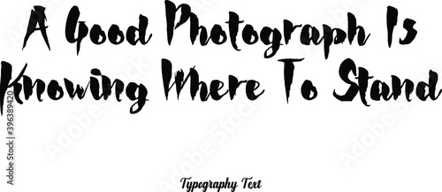 Bold Typography Phrase "A Good Photograph Is Knowing Where To Stand " on White Background