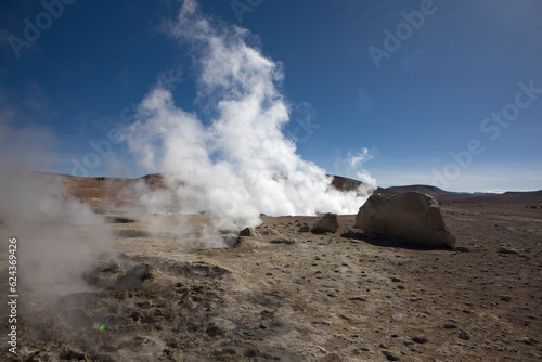 Bolivia geothermal field Sol de Magna on a sunny winter day