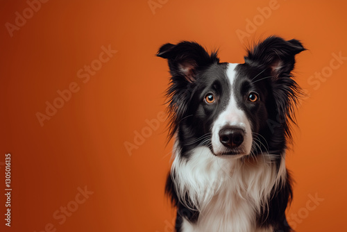 Border Collie dog on minimalistic colorful background with Copy Space. Perfect for banners, veterinary ads, pet food promotions, and minimalist designs.
