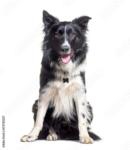 border collie, purebred dog, canino, dog, carnivore, mammal, pet, domestic, vertebrate, animal, studio, studio shot, nobody, no people, sheepdog, white background, cut-out, isolated on white, isolated, white, one animal, sitting