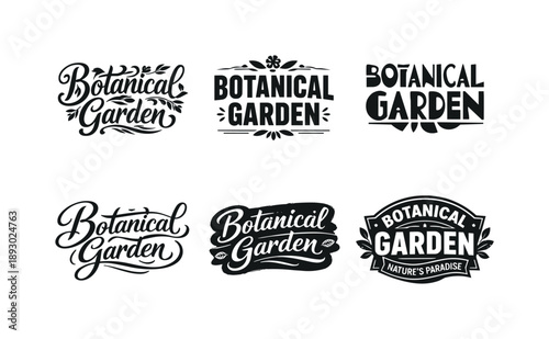 Botanical Lettering Grid. Botanical Garden. Set lettering. harmonious lettering variations of the same emblematic concept, each with different artistic