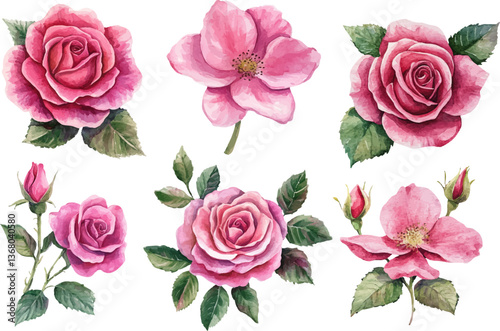 rose, flower, pink, floral, flower, vector, bouquet, rose, pattern, nature, valentine, leaf, love, blossom, vintage, design, card, nubes, watercolor, wedding, spring, decoration, illustration, plant
