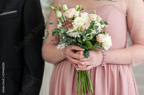 Bouquet of flowers in the hand of the bride
