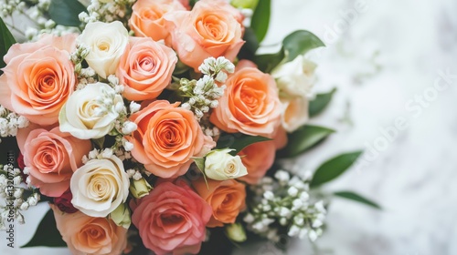 Bouquet of flowers with white and orange roses