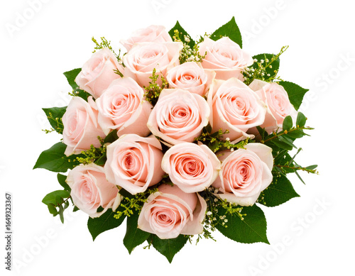 Bouquet of Soft Pink Roses with Greenery, Front View, Isolated on Transparent Background