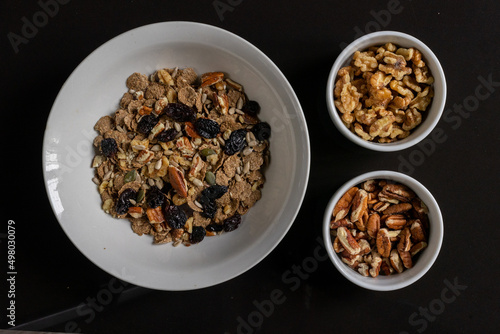 bowl of healthy breakfast with nuts