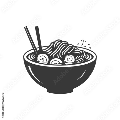 Bowl of Ramen Noodles with Chopsticks and Garnish
