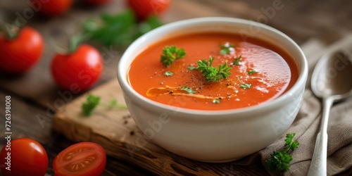 Bowl of Tomato Soup on Cutting Board
