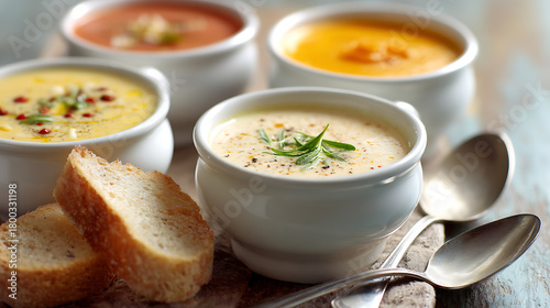 bowl, various, cream, soup, bread, food, contrast, detail, sharpened, simple, clean, subtile, background, minimal, visual, element, smooth, object, still, life, high-coloured, shadow, product, form, shape, cooking, abstract, isolated, meal, fresh, texture, table, cookery, assortment