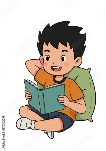 Boy Reading Book Illustration Child Student Learn Happy Transparent