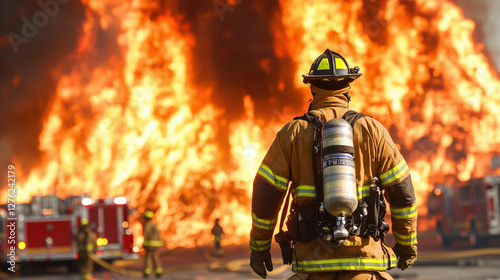 firefighter, fire, flames, emergency, response, bravery, rescue, safety, equipment, team, hose, danger, heat, smoke, uniform, training, intervention, hero, service, firefighting, operation, disaster, action, protection, flames, ladder company, dedication, active, urgency, life, mission, courageous, work, vehicle, teamwork, fireman, incident, community, support, effort, intense, scene