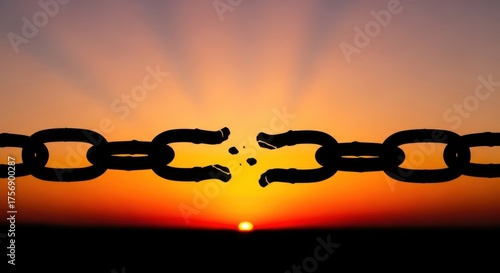 chain, sunset, freedom, strength, liberation, silhouette, horizon, sky, dusk, sunlight, symbolism, hope, concept, energetic, emancipation, optimism, resilience, breaking, glowing, dramatic, separation, independence, escape, power, abstract, background, inspirational, motivation, determination, open, sunrise, possibility, transformation, potential, break, radiant, bold