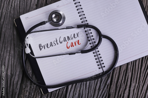 "Breast Cancer Care" Word on Note book With Stethoscope