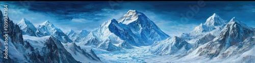 Breathtaking View of Everest from Tibet: Panoramic Landscape of the Majestic Himalayas with Blue Skies and Ice-Covered Peaks