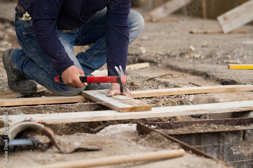 bricklayer at work in a building site
