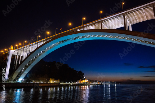 bridge, night, city, water, river, harbor, architecture, sky, sunset, landmark, skyline, travel, harbor, city landscape, building, landscape, evening, blue, light, panorama, urban, boat, oporto, portugal, view, douro