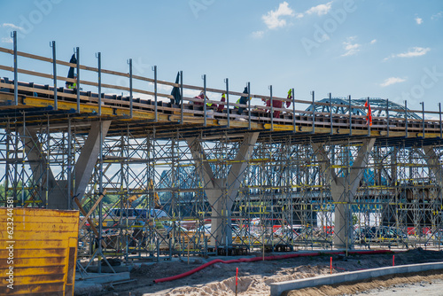 Bridge building construction site in city centre in Riga, Latvia