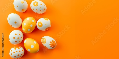 Bright and Festive Easter Eggs in Vibrant Orange Background with Polka Dots and Floral Patterns