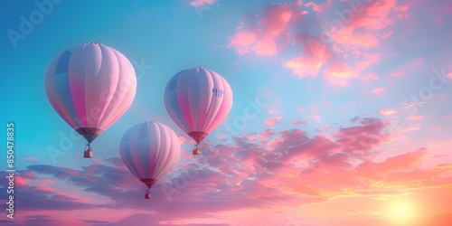 Bright balloons in the sky, sunrise glow, pastel colors, high definition, serene and beautiful, floating gracefully, tranquil morning