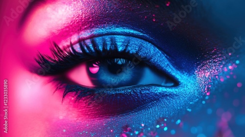 blue, pink, eye, make-up, closeup, bright, beauty, cosmetic, colourful, glamourous, shimmer, vibrant, creative, fashion, style, detail, artistry, application, pigment, lash, sparkle, eyeshadow, aesthetic, trendy, fun, closeup, bold, feminine, expressive, stunning