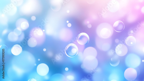 Bright bubbles floating in a dreamy pastel background with soft blue and pink hues