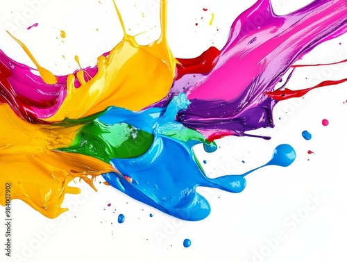 Bright color splashes, abstract art, isolated on white