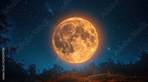 moon, night, sky, star, bright, full, nature, landscape, calmness, celestial, illumination, beauty, scenery, peaceful, astronomy, glowing, dark, forest, silhouette, evening, cosmos, light, horizon, calm, starry, nightscape, view, magical, aethereal, clear sky, tranquil, serene, night time, atmospheric, celestial bodies, night sky