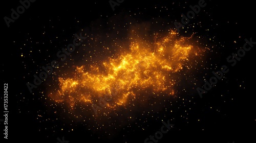 Bright glowing golden nebula cluster in deep space with scattered sparkling stars on black background