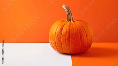 Bright orange pumpkin on white and orange backdrop