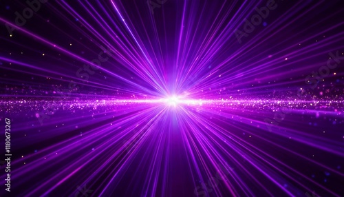 Bright purple light effect with rays and highlights, glow particle, black background