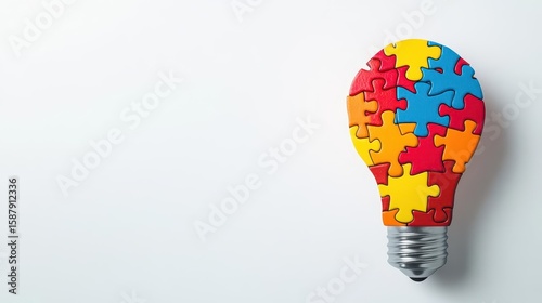 bright, shine, light, bulb, constructed, jigsaw, puzzle, piece, idea, solution, awareness, understand, visualisation, arrangement, innovation, resolution, perspective, creativity, inspiration, composition, insight, imagination, nirvana, invention, cognition, brilliance, clarity, illumination, synthesis, ingenuity, imagery, analytical, academic, assembly, articulate, simplicity, metaphor