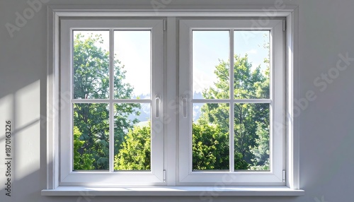 window, sunlight, tree, view, interior, room, light, white, bright, nature, sky, green, pane, divided, frame, fresh, indoor, home, house, residential, clear, sunny, morning, tranquil, peaceful, serene, modern, clean, simple, natural