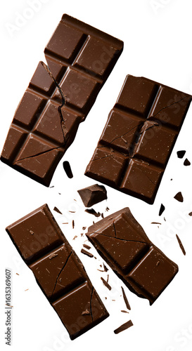 Broken Chocolate Bars Falling on Black Transparent Background Photo