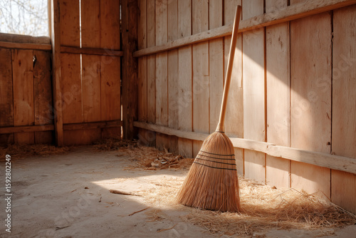broom, barn, rustic, wood, interior, farm, hay, sunlight, country, rural, cleaning, old, vintage, traditional, tool, housekeeping, wooden, building, structure, agriculture, farming, straw, domestic, scene, simple, natural, light, shadow, wall