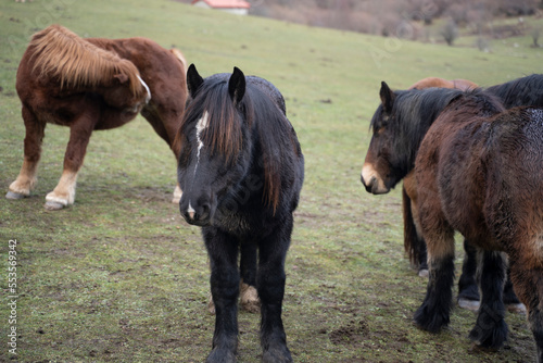 horse, grass, field, green, mountain, spain, animal, farm, farming, nature, vale, meadow, peacefully, brown, fast horse