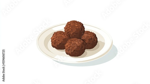 food, meatball, brown, plate, dish, cookery, meal, dinner, lunch, delicious, tasty, appetising, eating, cook, receipe, cooking, culinary, gastronomy, eatery, cafes, kitchen, table, isometric, pixel, art, illustration, digital, graphic, design, image, artwork, vector, photo, round, sphere, white, background, simple, clean, minimal, meatball, view, served, of, style