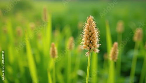 Brown needle shaped flowers on tall green stem, Tall grass, Razor grass