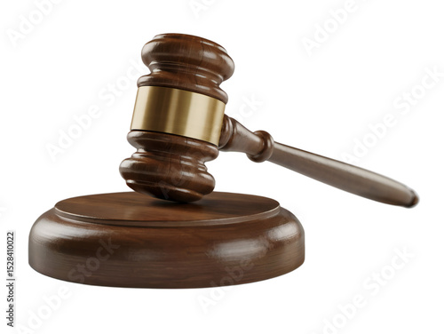 Brown wooden gavel on sound block isolated on justice auction legal symbol on transparent background