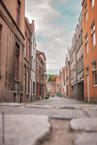 Bruges, Belgium. Brugge. View of a typical street in the town of Bruges.