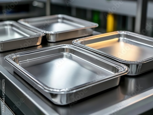 Brushed stainless steel trays in a streamlined production line