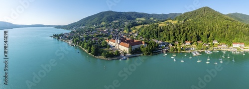 Bräustüberl and Schlosswirtschaft at Tegernsee, aerial view, Tegernsee, Bavaria, Germany