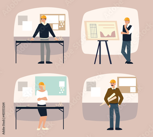 builders and architects set, planning project building construction